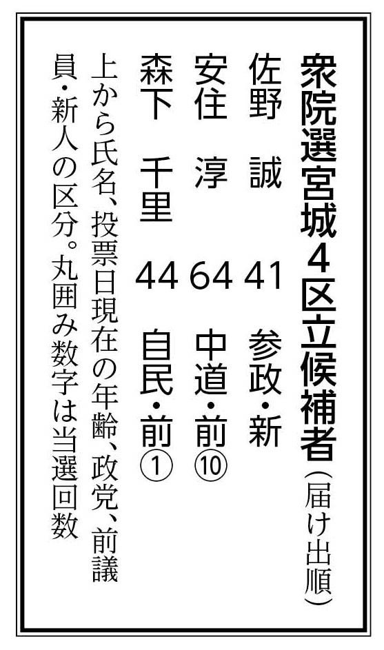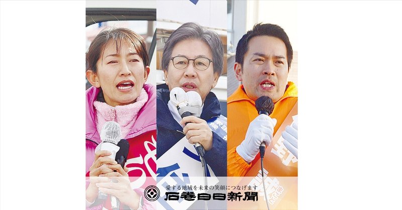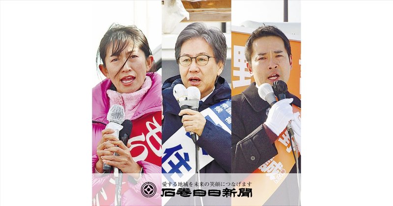 石巻日日新聞社は第51回衆院選(2月8日投開票)の宮城4区に立候補した3氏にアンケートを行い、国政や地域の課題への提言を尋ねた。