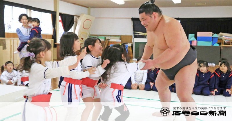 石巻出身の石東力士 法山寺幼稚園で交流