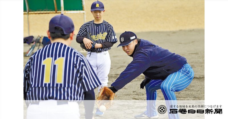 東松島市主催の「日本製紙石巻硬式野球部野球教室」が17日、同市鷹来の森運動公園で開かれた。東北屈指の社会人野球チームで活躍する選手たちが、走攻守の基本動作や実戦で役立つ心構えなどを指導。参加した市内の小中学生130人は練習を通して精神と技術を磨いた。【山口紘史】