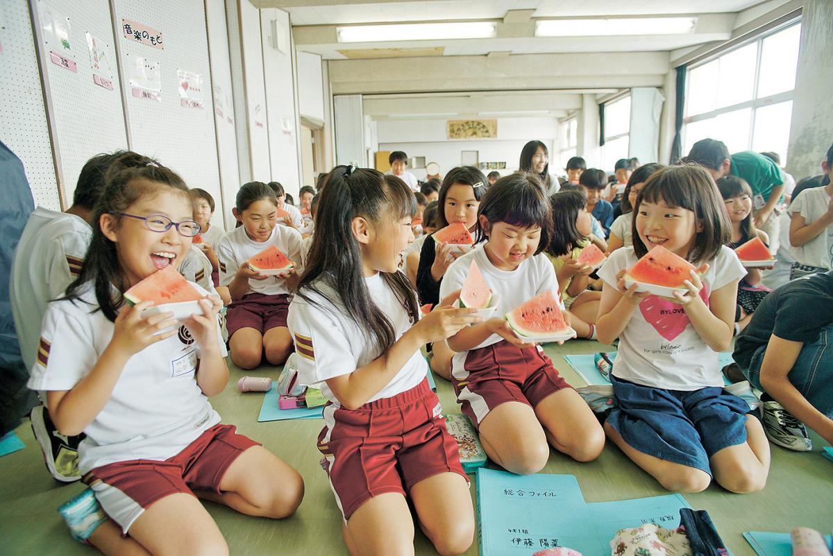 向陽小で食育授業 スイカの甘さに笑顔と歓声