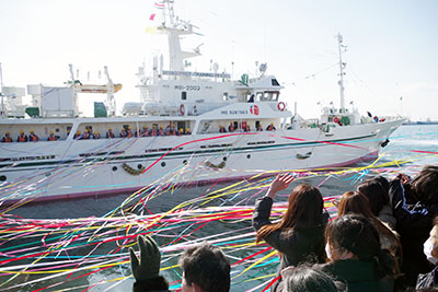 宮水生乗せ宮城丸出港 いざ、学びの待つ大海原へ